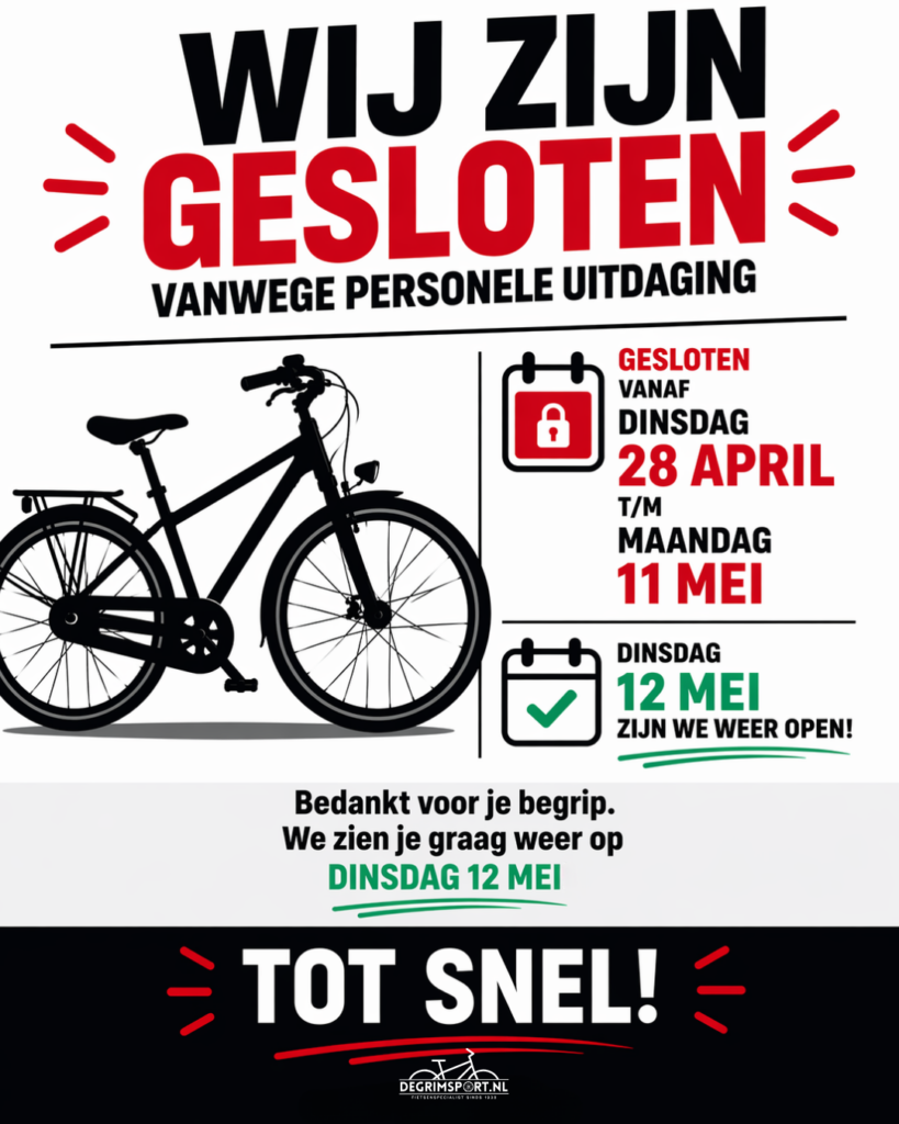 Excuses voor het ongemak en bedankt voor je begrip 🙏🚲